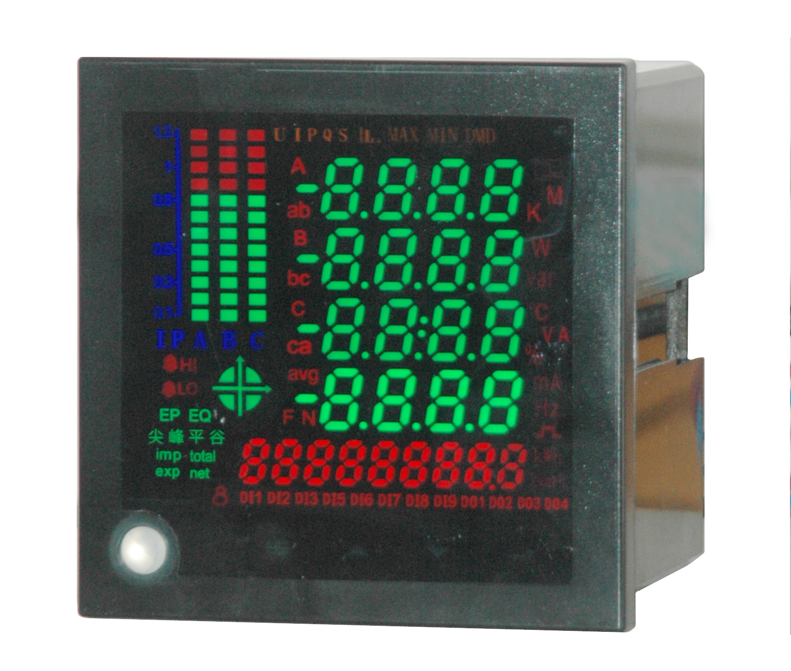 测量三相电流,电压,有功功率,无功功率,视在功率,功率因数,频率,电度,总谐波,63次分谐波。外观时尚,液晶显示,我司SEIK910显示有ILED和液晶显示两款,液晶显示就不做更多的详述,更多详情请咨询我司或者参考我司样本和样表。